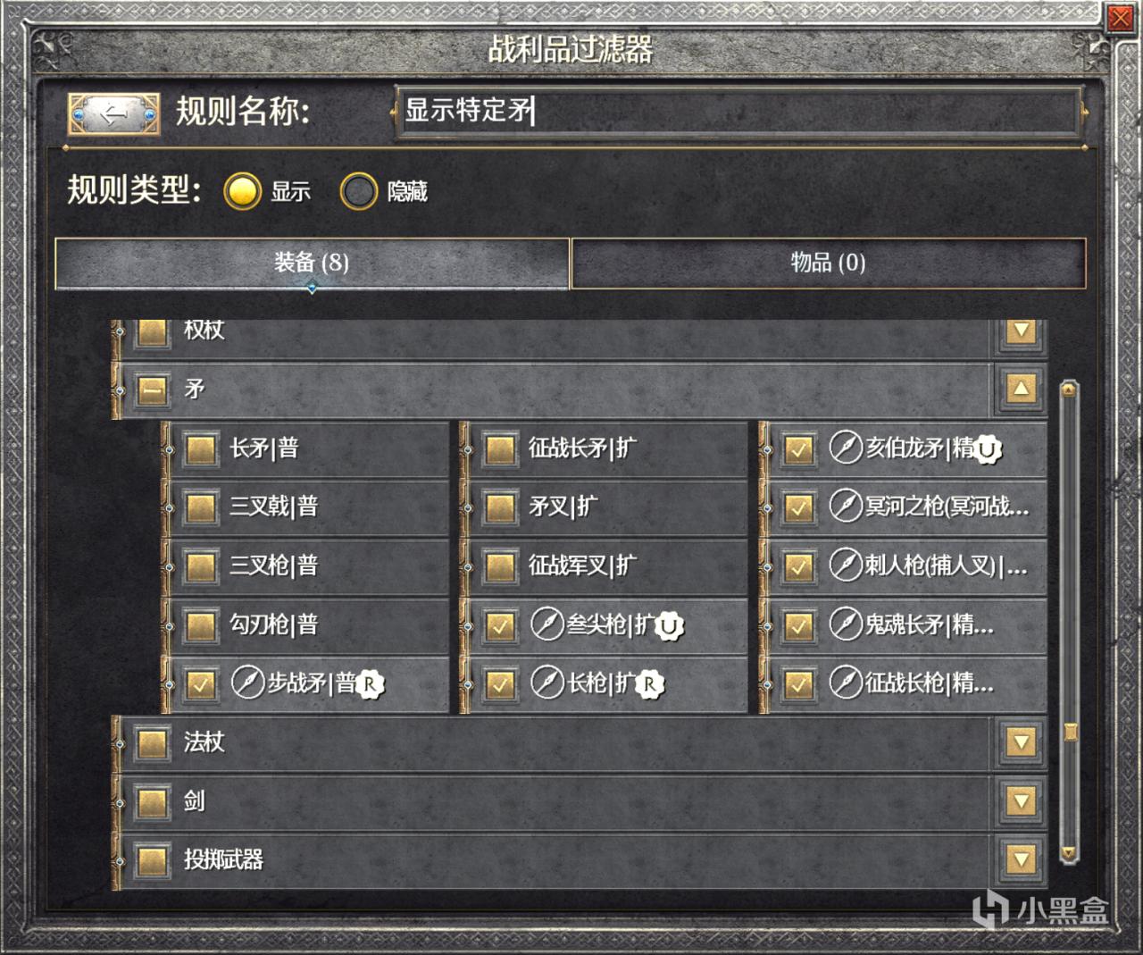 前⾯规则全都是屏蔽,最后⼀条显⽰全部物品。