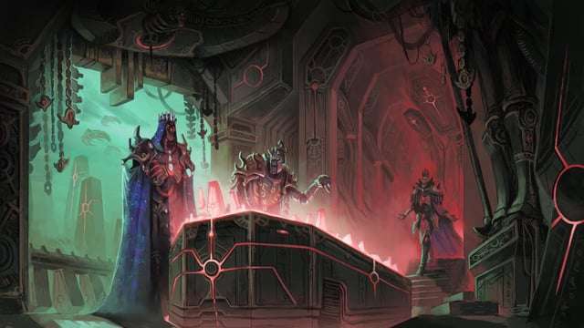 在天堂之戰的最後階段全程,寂靜王斯扎拉克都在等待着一個時機,一個星神露出破綻的機會。儘管整個死靈種族如今都聽他號令,但他無法指望在星神力量巔峯時期與之對抗,即便他這麼做並取得了成功,死靈也必須獨自完成對抗古聖及其日益強大盟友的天堂之戰。