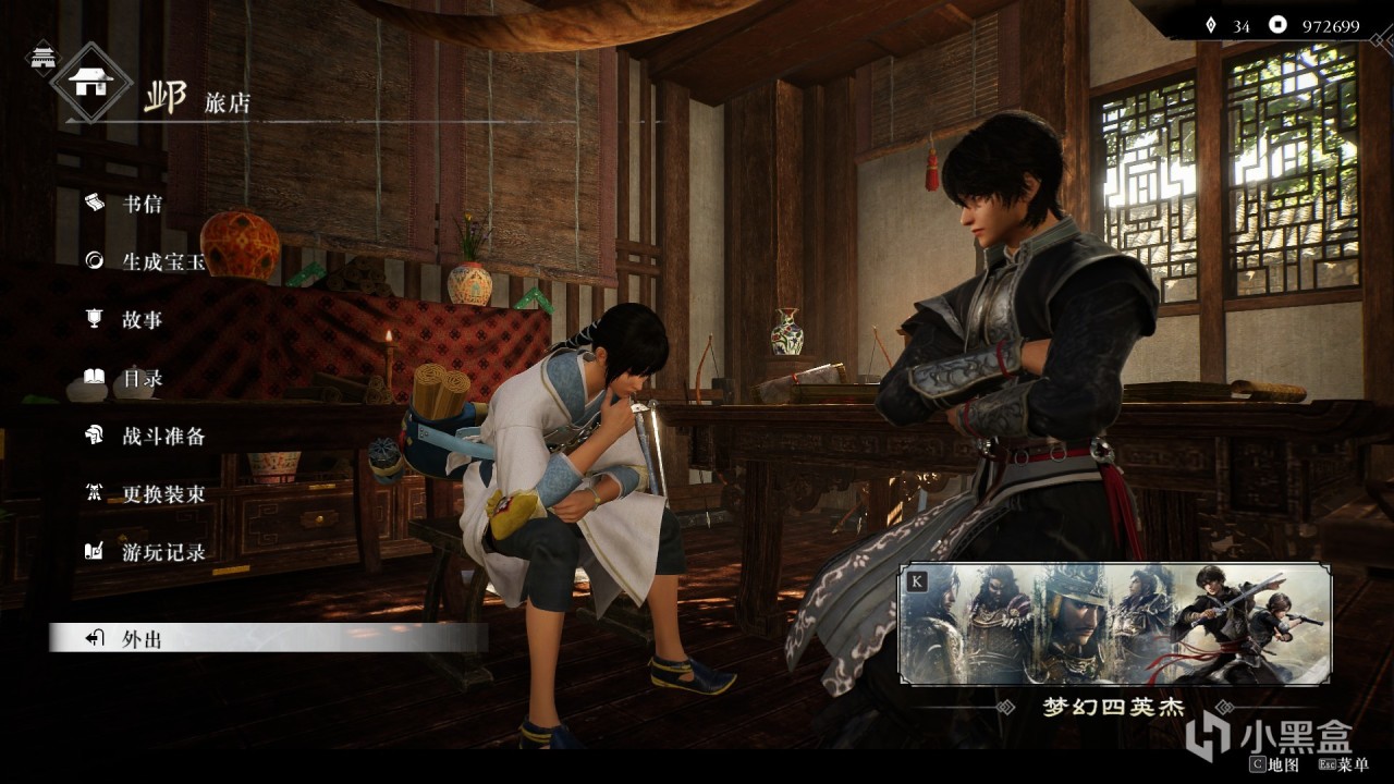 本篇整體畫面細節豐富,移動場景的規模,有些類似“騎馬與砍殺”等策略遊戲的移動大地圖,你可以操控你的角色跟大地圖上的NPC進行交談,觸發劇情或是任務等等,見證親歷其中發生的故事,代入感十足。大地圖到達的城池會有旅店可以休息,能收到書信,進行戰鬥準備、更換裝束,查看遊玩記錄,也可外出,類似養成遊戲或是動作遊戲的據點,書信和外出可能推動劇情,外出會出現在大地圖,有可解鎖的路標可以進行快速移動,以及查看目標、城鎮、武將位置等信息。