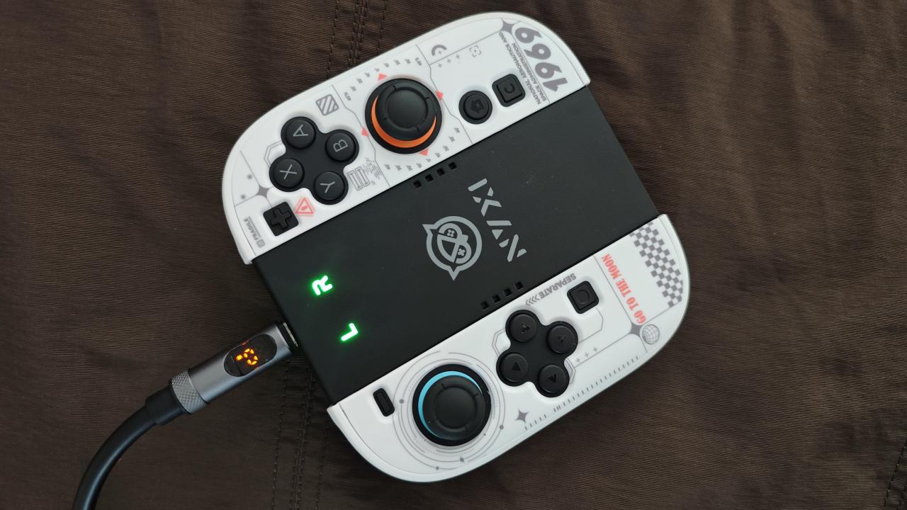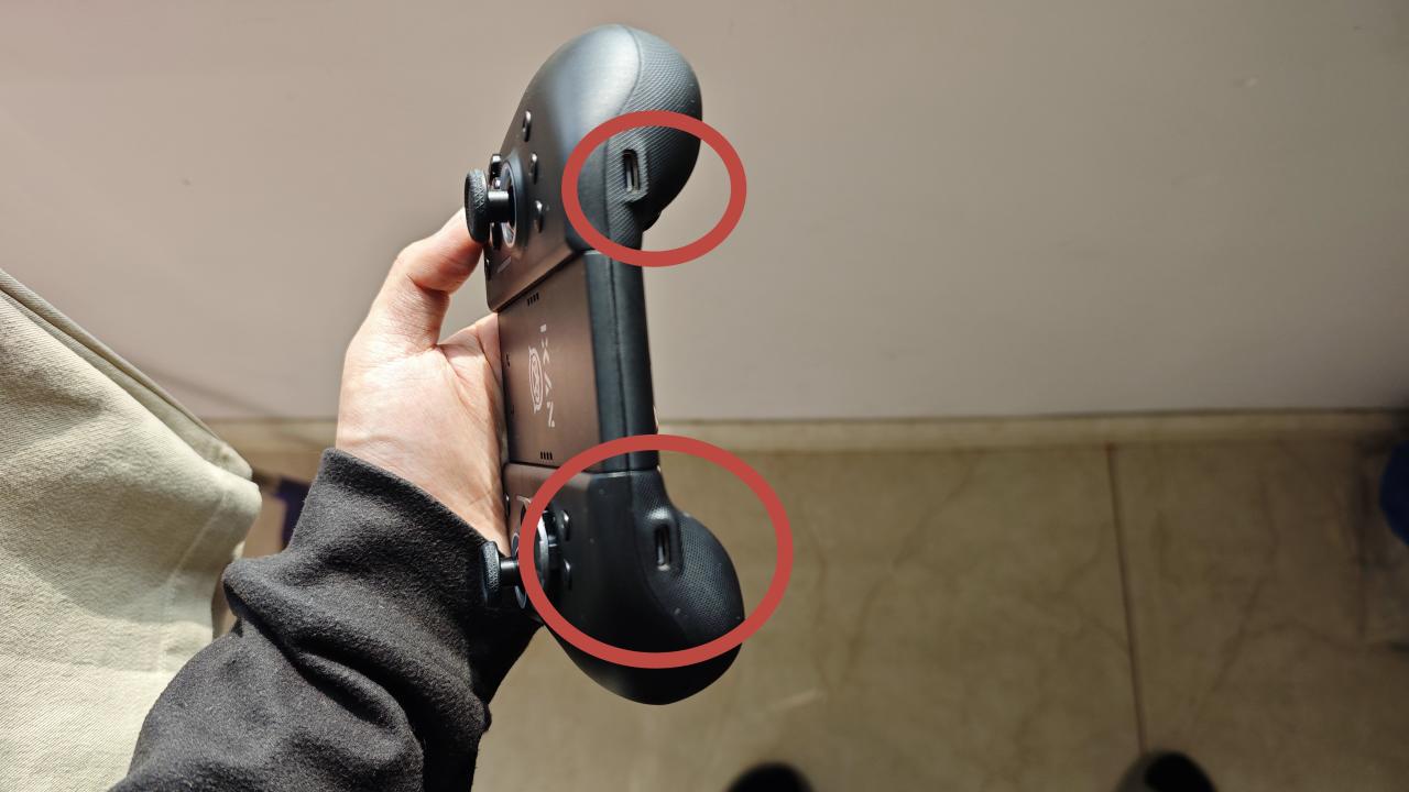 不过我倒是发现了另一个链接桥的妙用,相比原装的握把,NYXI这款手柄附带的链接桥是有一个tapy-c充电口的,插上电再把手柄装上就能给手柄充电了。