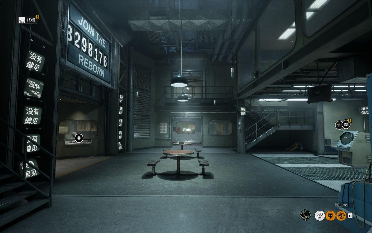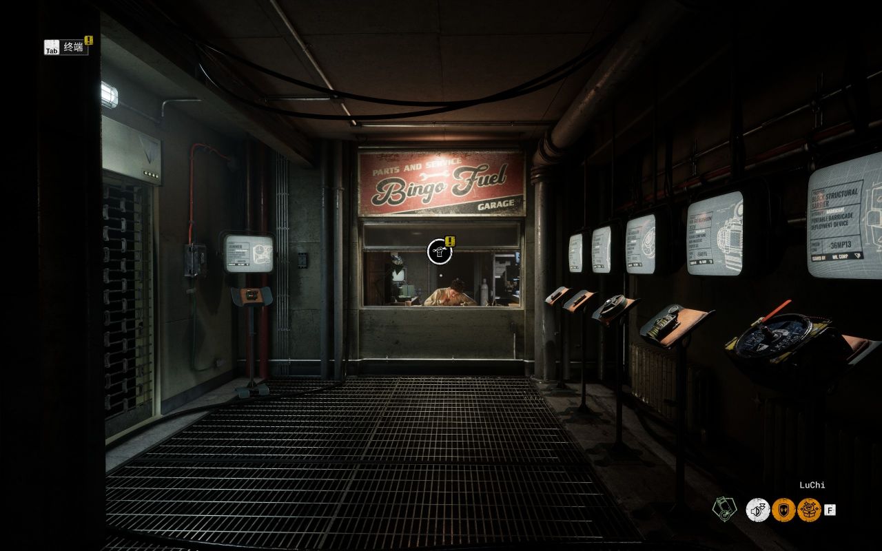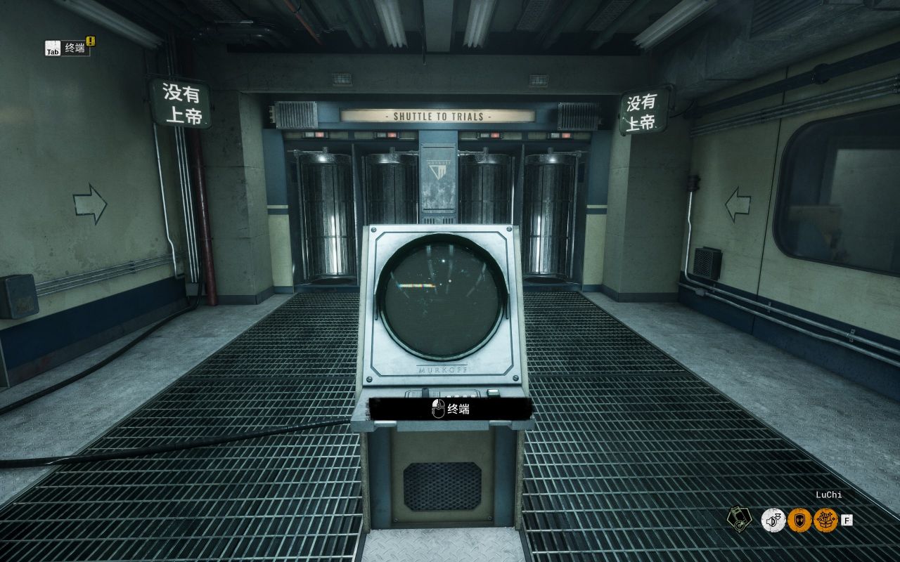 有一个小电脑则是选择游戏关卡和模式等的设施,往前走的圆柱体装置则是坐车前往试炼场地