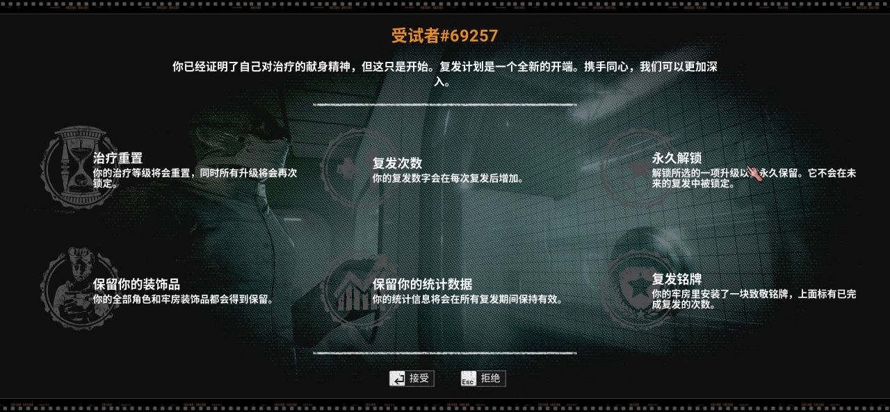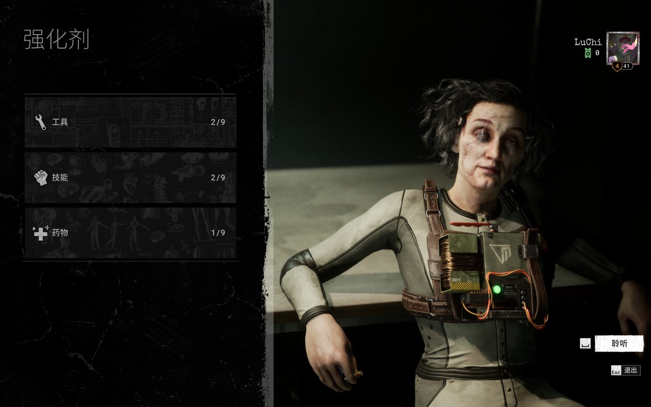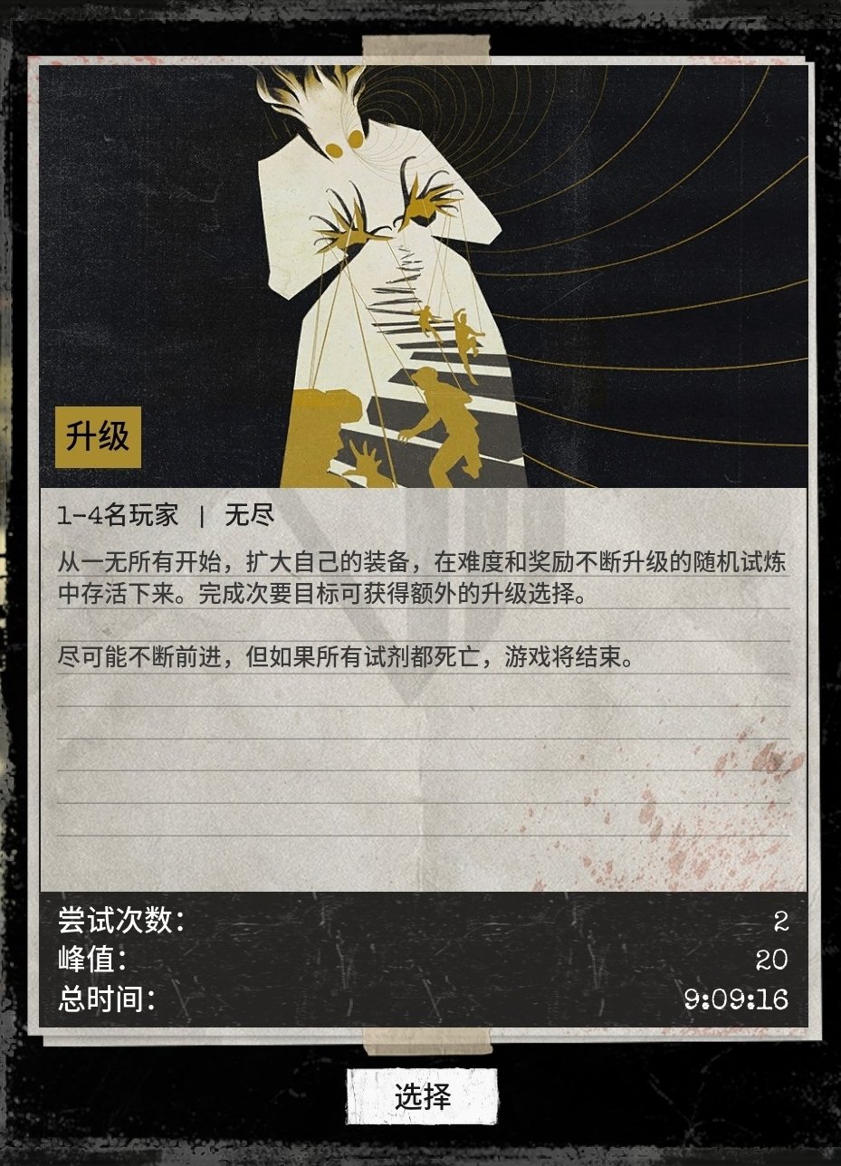 从一开始的什么也没有(开局会有两次选择),通关关卡会给处方,强化剂,技能装置,药物等等选择来提升生存能力