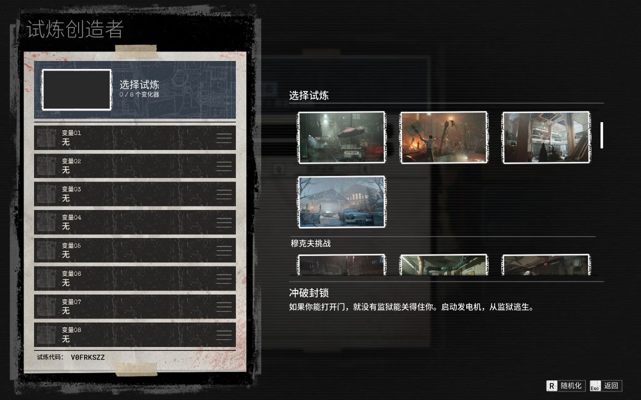 自己创造试炼环境,选择地图和变量