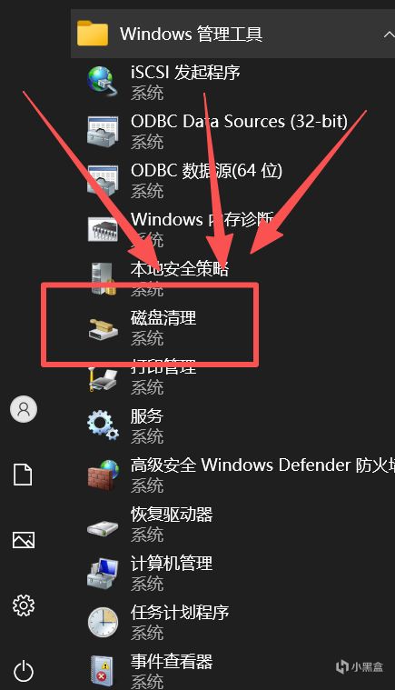 然后找到Windows管理工具,点击磁盘清理