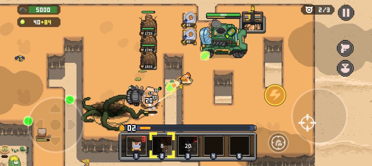 3.考虑到手机玩家的操作不便,设置了自动锁敌机制,增加了清理杂物的按钮