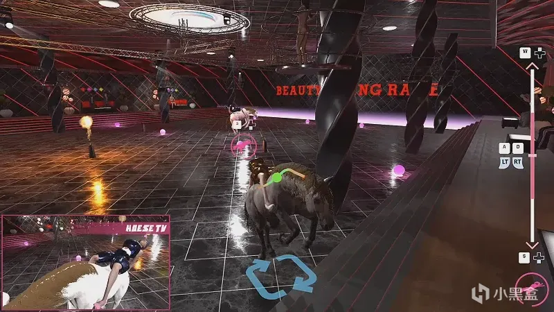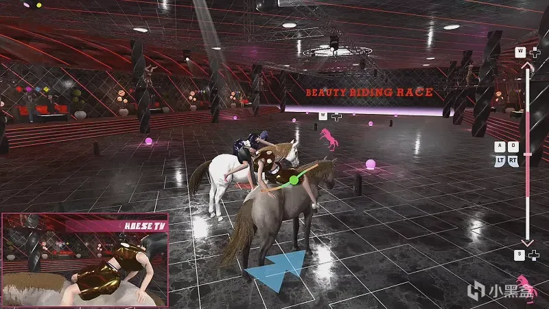 史上最灾难性的骑马比赛:全键盘只有两个键!按↓是撑马屁股前进,按↑是勒马脖子转弯。没有马鞍,那玩意儿不需要的。骑手都穿比基尼高跟鞋,在马背上滑来滑去还要把握平衡的同时抬脚踹人。