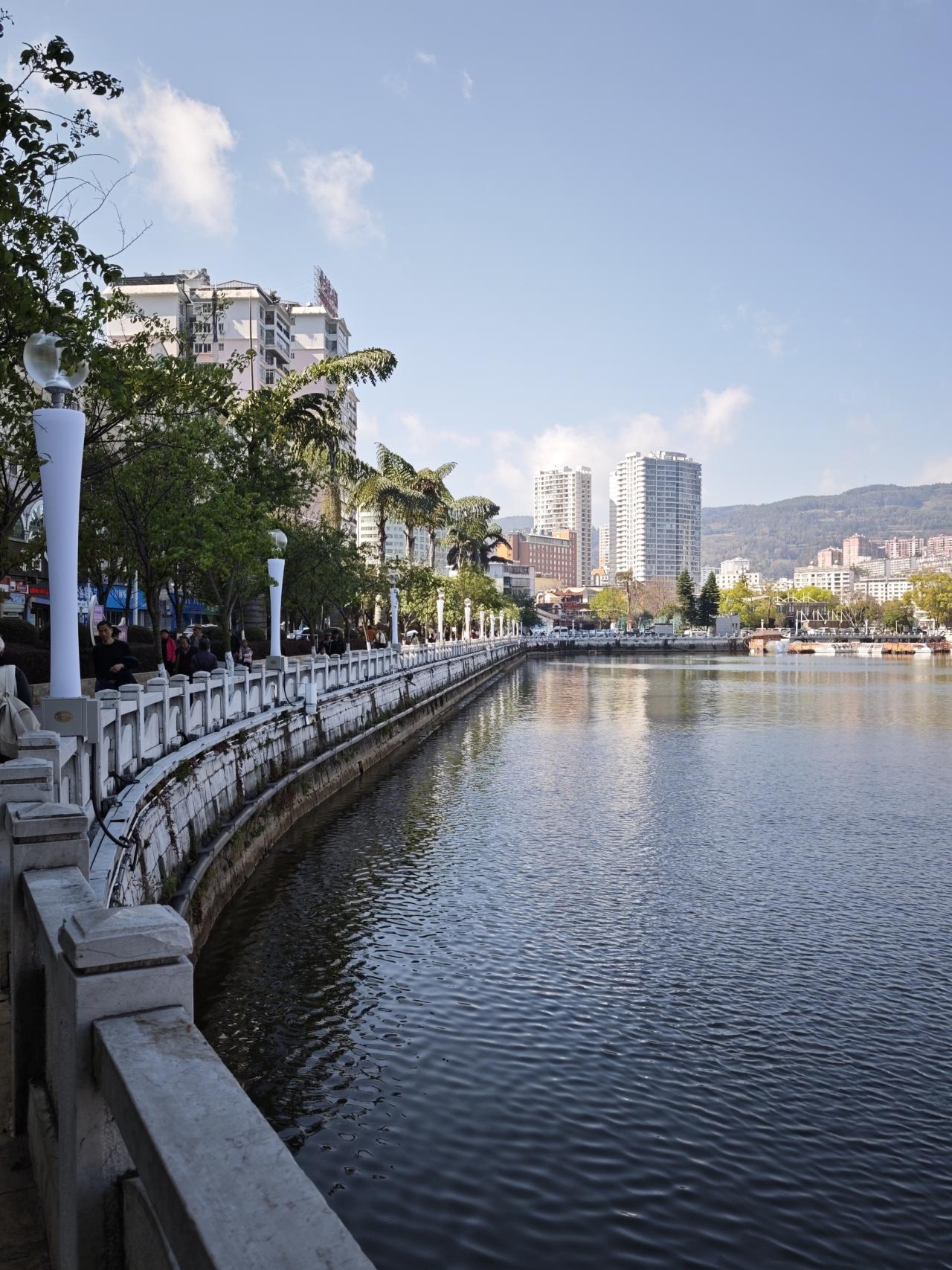 大叔還挺健談,和我聊起金湖,聊起環湖步道上的老老少少,聊起充滿千璽風的街道樓房,聊起路上遇到的一家人氣爆滿,連桌凳都擺出店面的米線店。