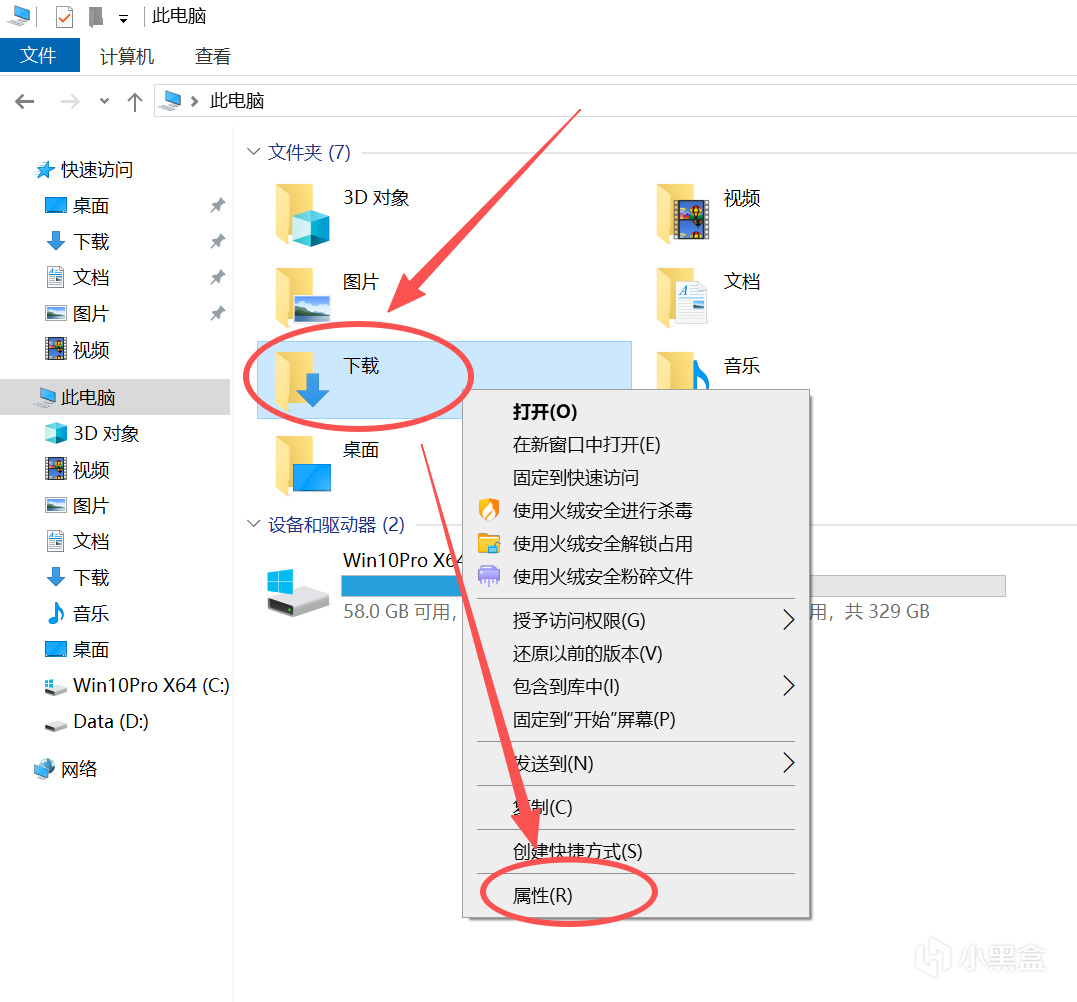 打开此电脑,这里我以download文件夹为例子,其余的皆可以这么做,右键点击文件夹,打开属性