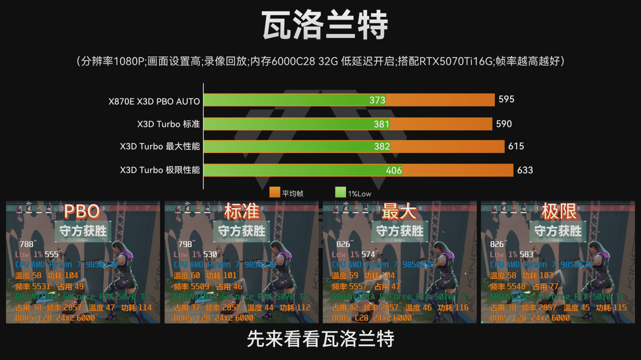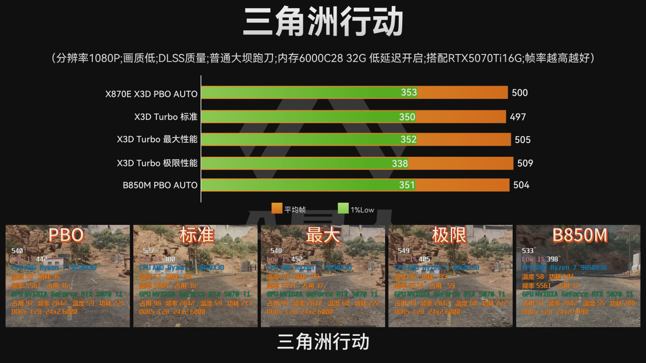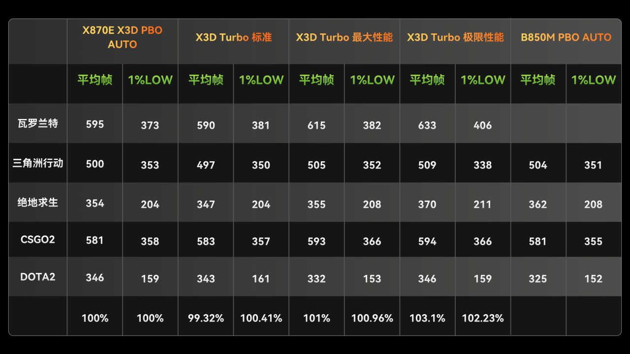 综合以上游戏测试结果来看,X3D专属主板的X3D Turbo模式中,仅极限模式能带来轻微的帧率提升,但差距极小,完全达不到“非买不可”的程度。很多宣传上的提升在游戏实际表现中并没有发现。