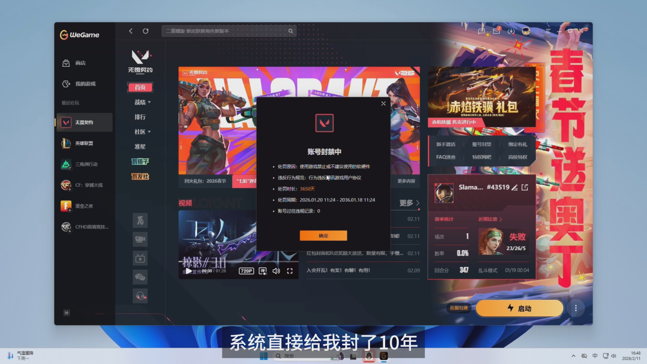 在搭载B850主板时,系统直接给我封了10年,导致B850主板无法测试同一组录像了,目前还不确定是什么原因造成封号,推测可能与X3D相关的系统插件或者其他软件有关,有懂行的朋友帮忙分析一下吗?