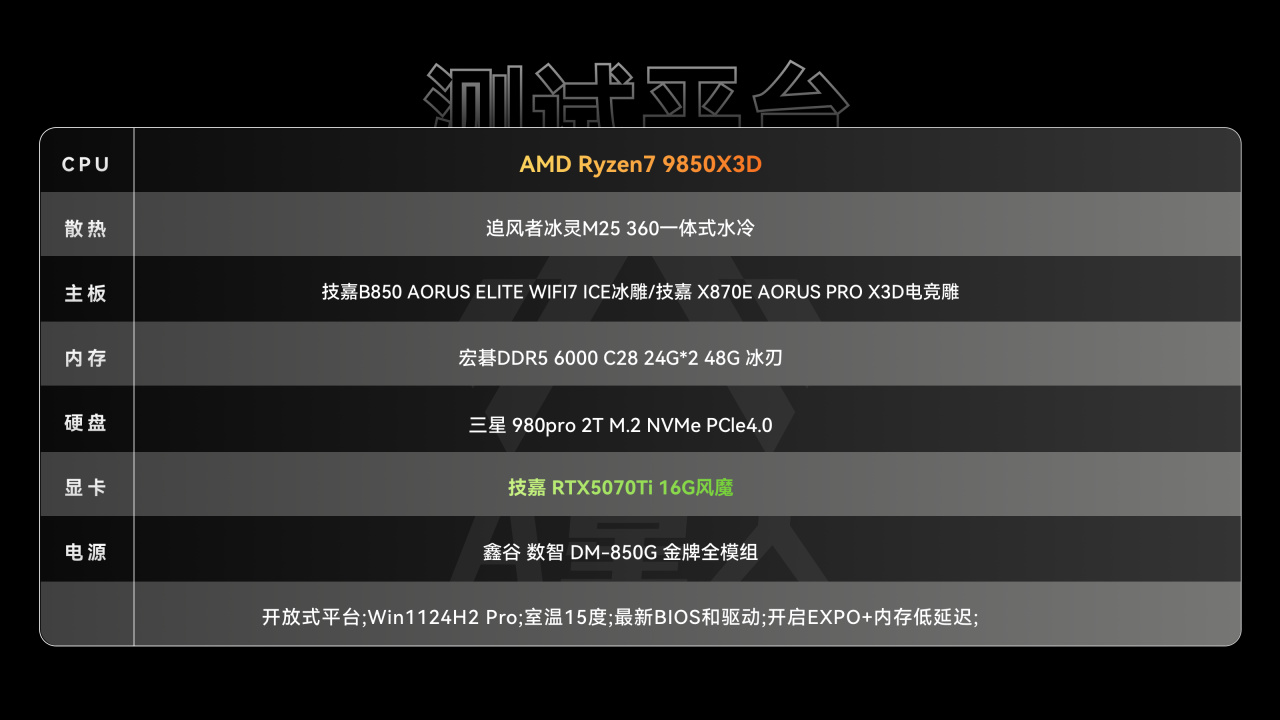 • CPU使用AMD最近发布的游戏之王9850X3D