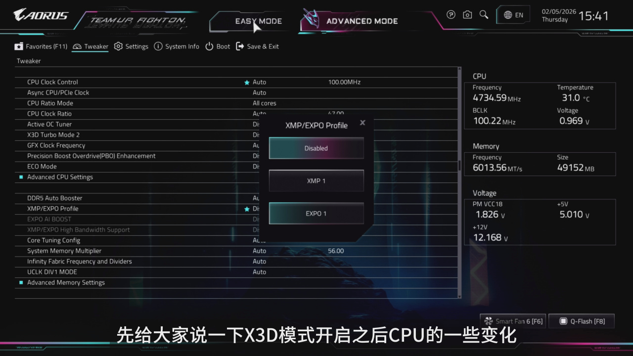 主板BIOS为官方最新F4版本,内存开启EXPO加上低延迟模式。