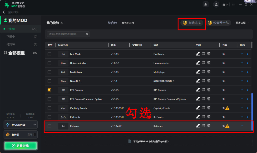 安装方法①——MOD管理器一键安装