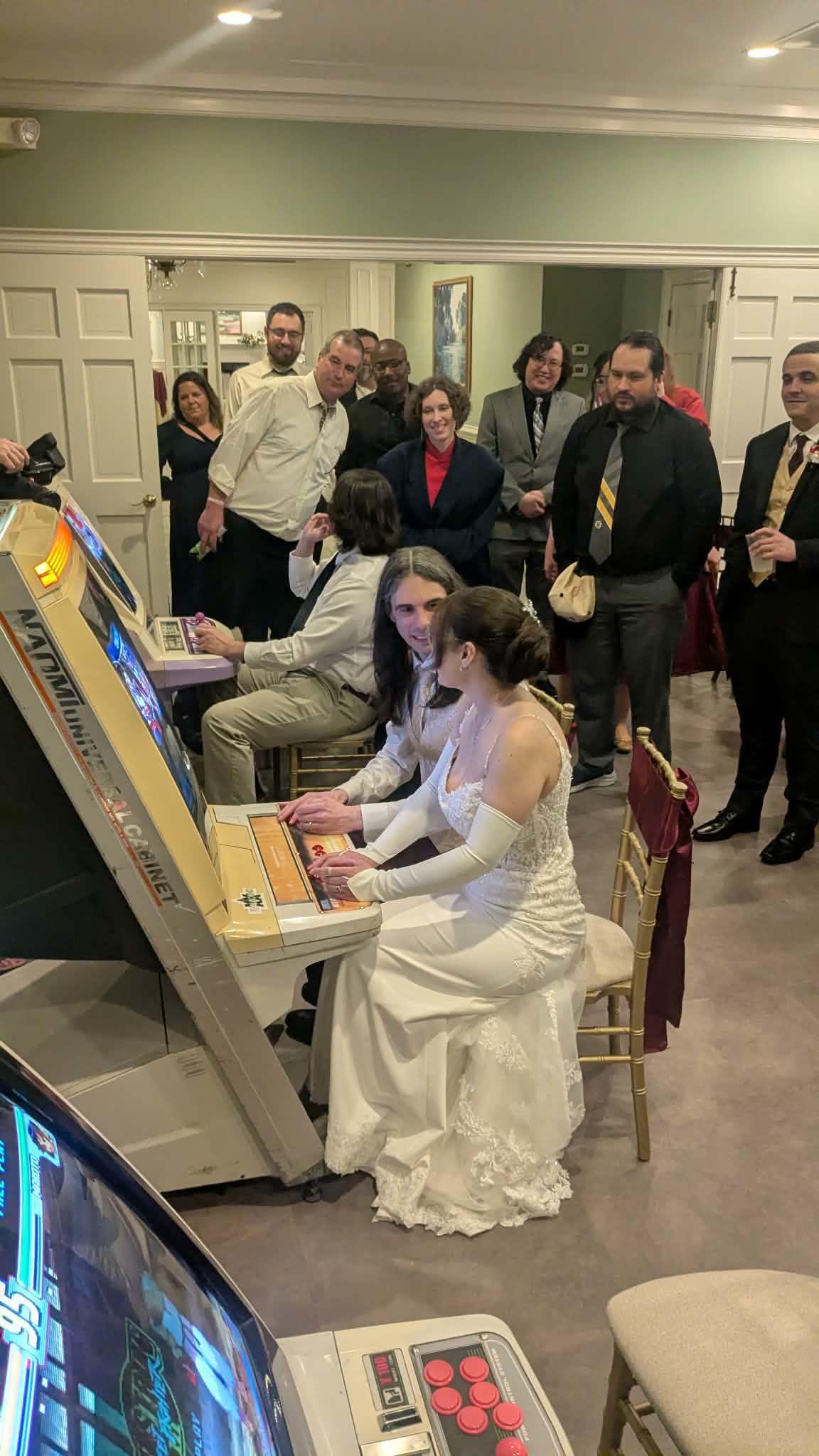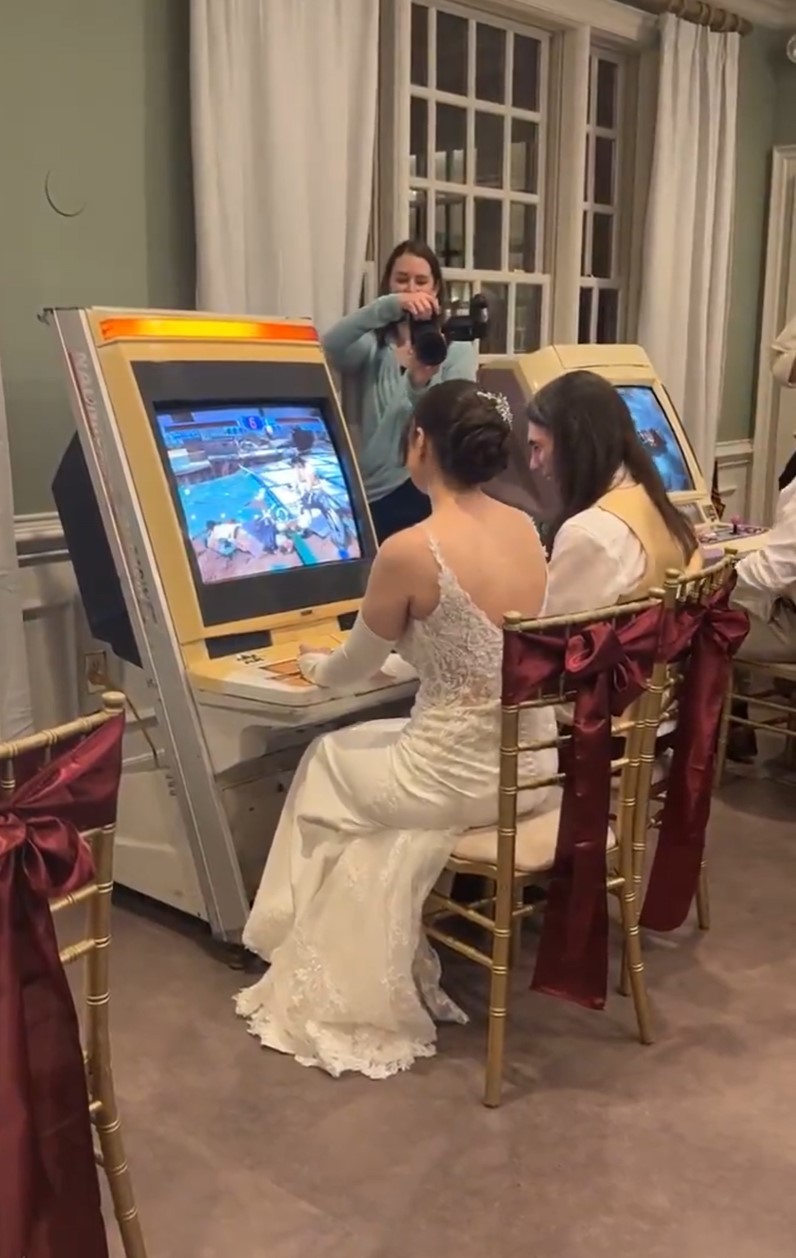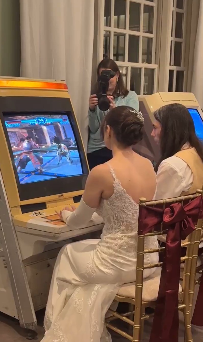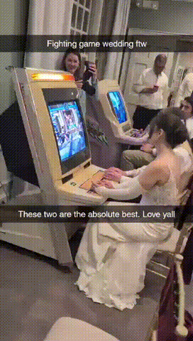 昨日,博主【Arcade Impact | SwolitaBot】在推特账号上分享了她和丈夫在婚礼上的格斗游戏对决。