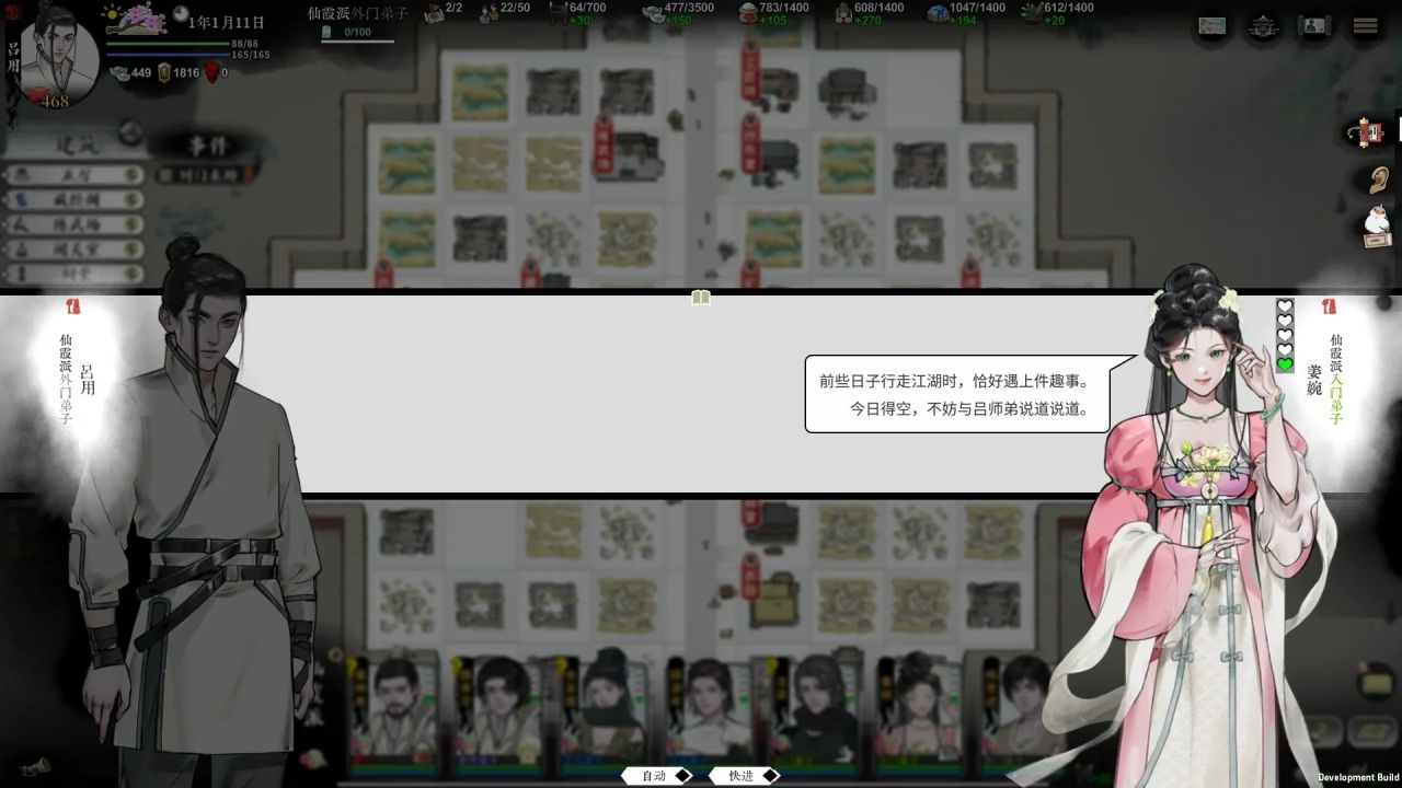 从外门弟子一步步积累门派功绩,直至成为掌门!管理门派建筑营造,科研外交;将天下神功尽数收入藏经阁,供弟子修习参阅;设置每名弟子的工作重心,因材施教,并率领他们惩奸除恶或横行霸道;最终将自己的门派建设成江湖中一支举足轻重之力量。