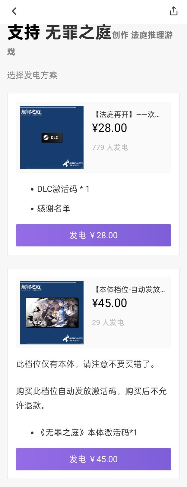 现在也开启了dlc众筹,众筹包含很多档位,其中有一个本体档位,给本体cdk,45元,比Steam售价便宜些。