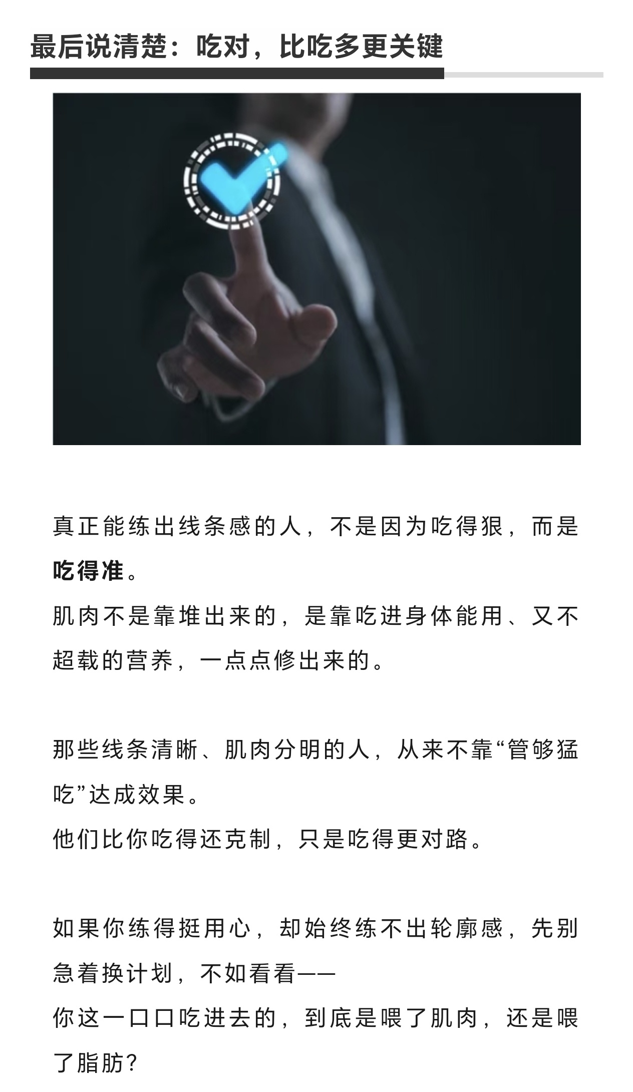 想練出肌肉線條的話,喫得越多,越不能亂。
