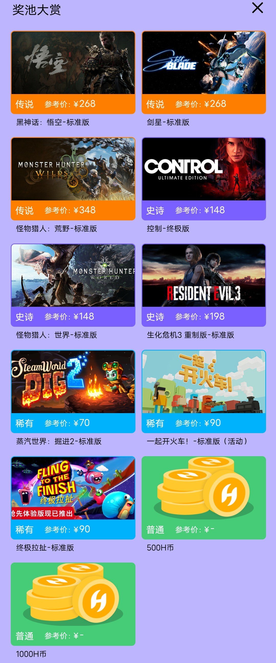 【白銀寶箱獎品一覽】