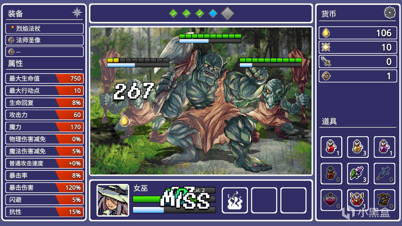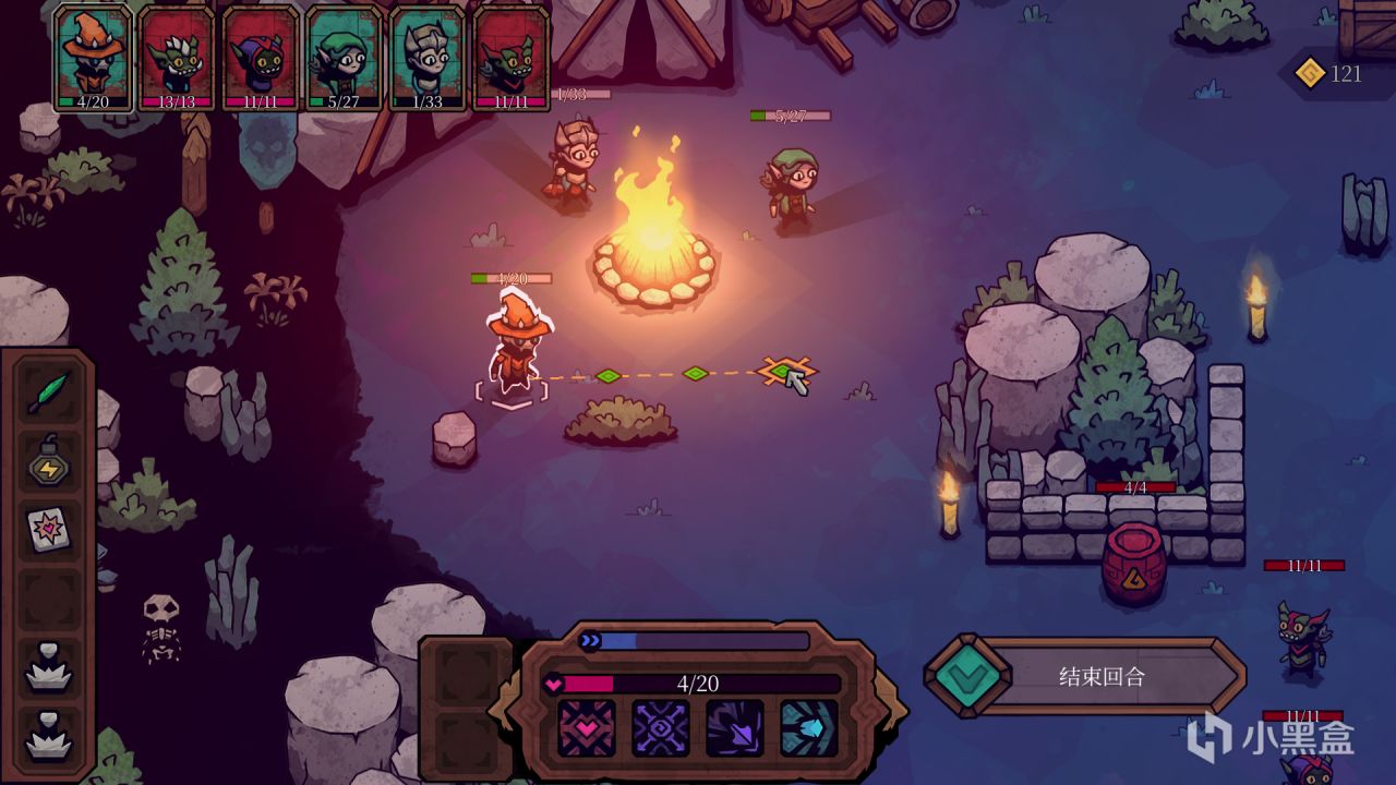 回合制地牢探索游戏,地牢中场景中可交互道具较多,角色攻击有友伤,比较有特色的是词条机制,每个角色都有4个技能,每个技能都能携带2个不同词条,不同词条和技能之间可以产生一些奇奇怪怪的化学反应