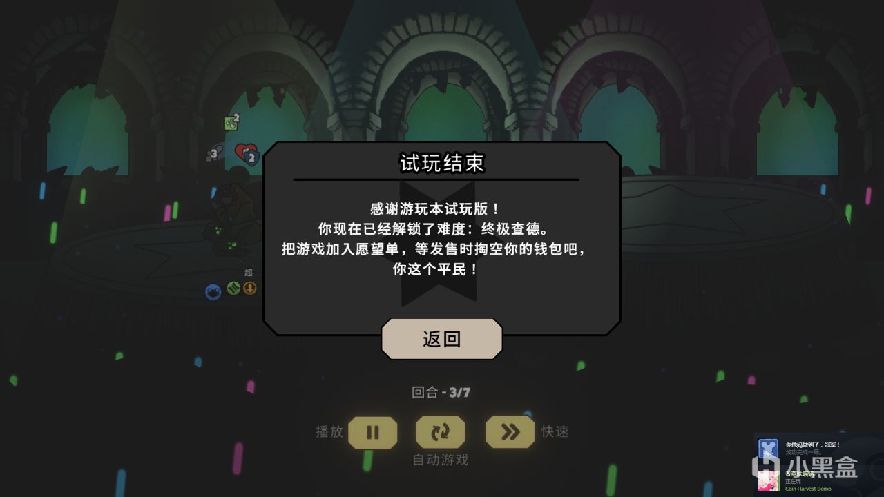 很轻度的卡牌肉鸽,demo只有第一个boss难度很小,卡牌分为攻击,防御,回血三类,点击消耗能量打出,全程没有感觉很特别的地方