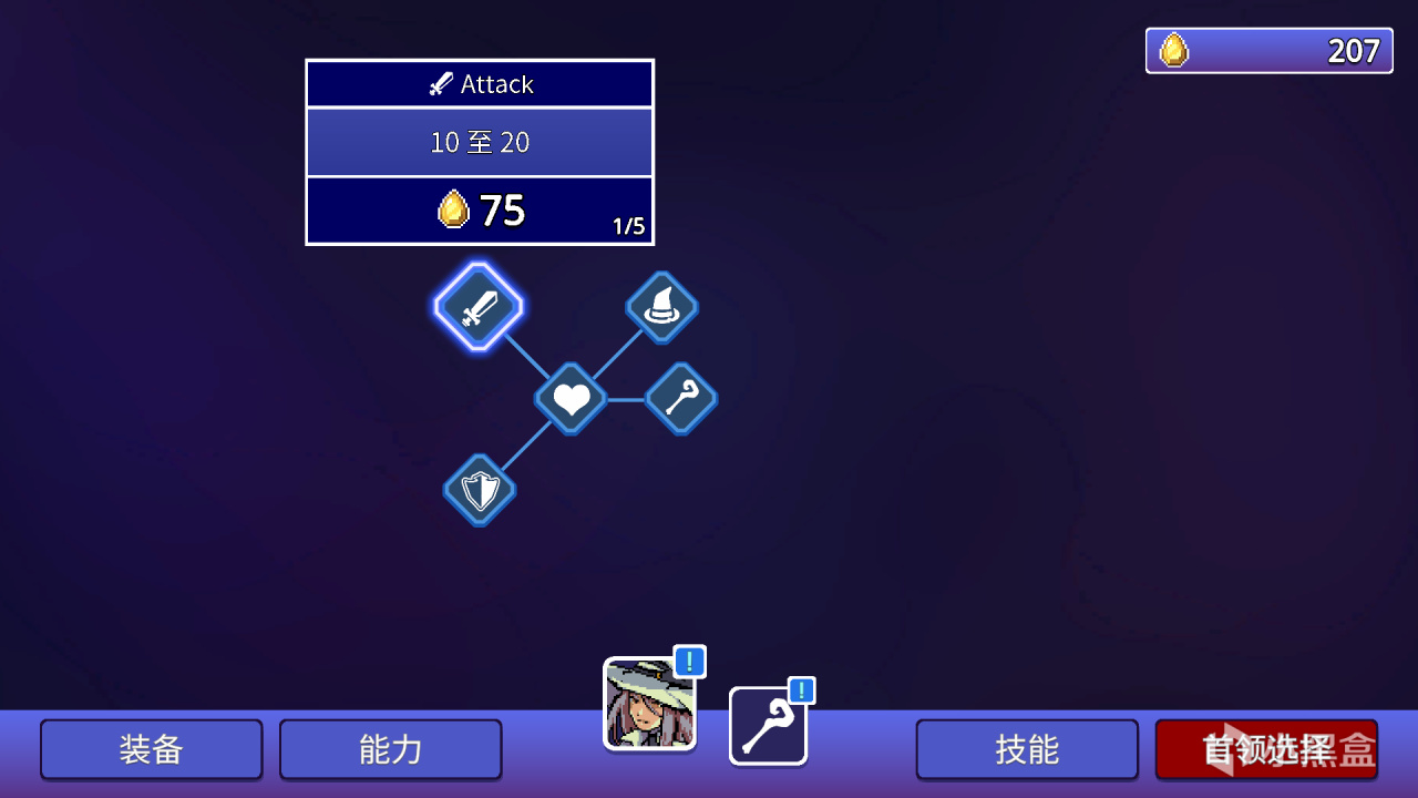 rpg题材的短篇放置增量游戏,局内自动战斗斩杀敌人,挑战 Boss,局外,通过角色技能树、武器与技能升级以及被动能力装备快速成长