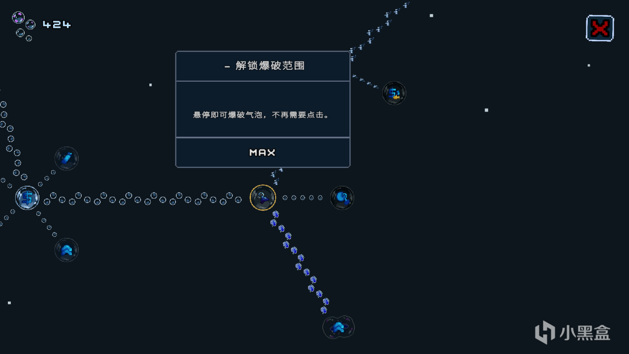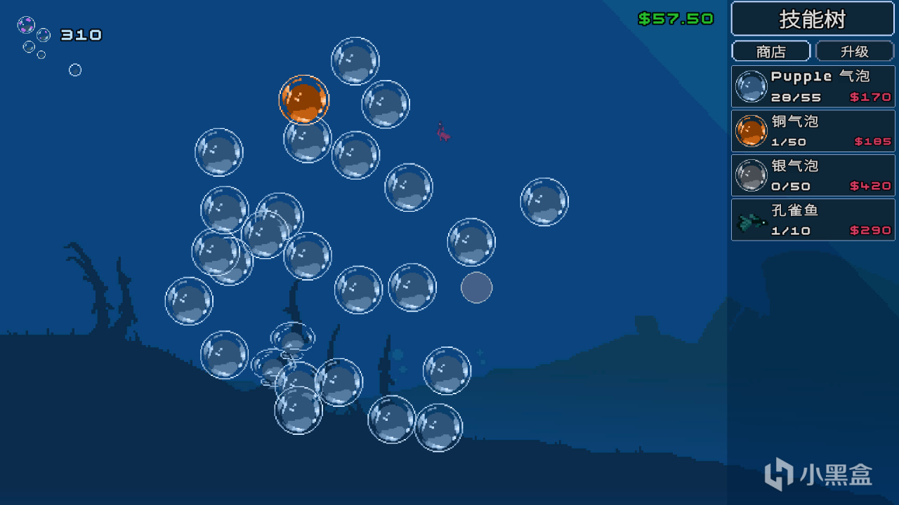 又是一款增量,戳泡泡,只要解锁了悬停即可戳破,游戏就变成无脑滑屏幕游戏了,货币有两种,升级泡泡数量和价值的钱,和解锁技能树的泡泡,鱼可以自动帮你戳泡泡,中后期可以当放置挂机游戏玩