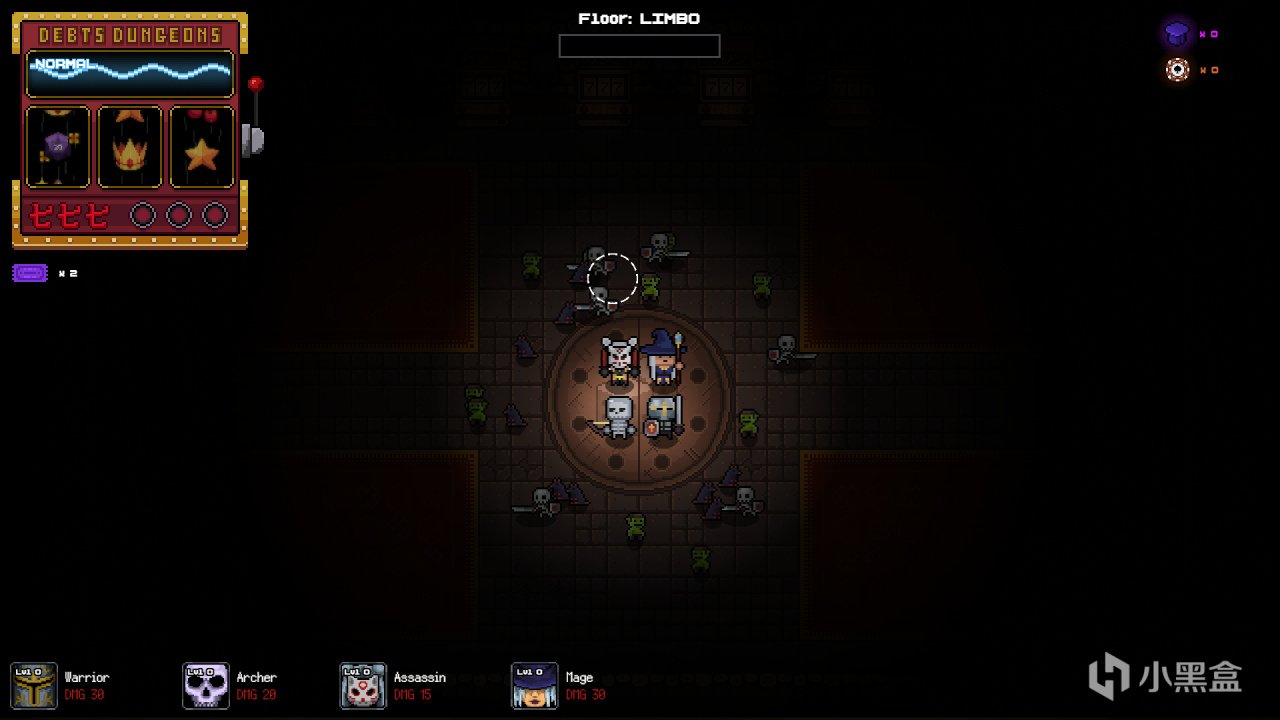 无中文增量游戏,加了点无意义的老虎机,老虎机可以抽出各种加成,抽数抽完结束本次战斗,升级分为两个部分,角色小队升级,和地牢升级,角色升级提升玩家强度,地牢升级提高怪物强度以及掉落物收益,战斗部分就是把鼠标移动到怪物身上,怪物并不会攻击玩家,加上必须手操,有些单调乏味