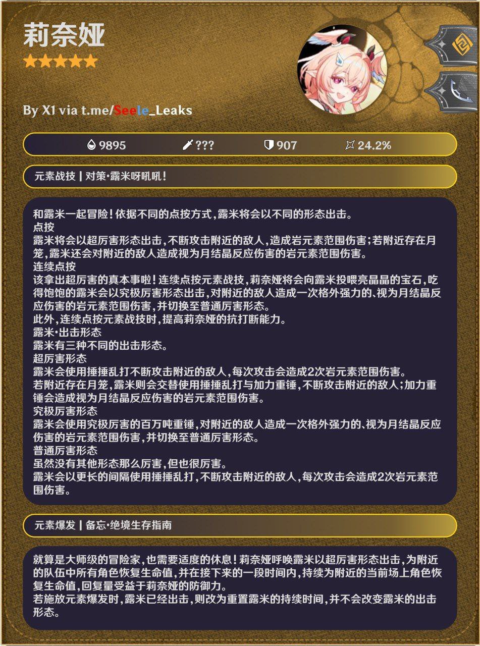 此外,连续点按元素战技时,提高莉奈娅的抗打断能力。