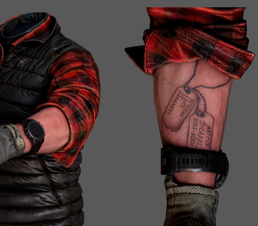疑似黑边专属奖励,纹身写的Edge of Darkness。