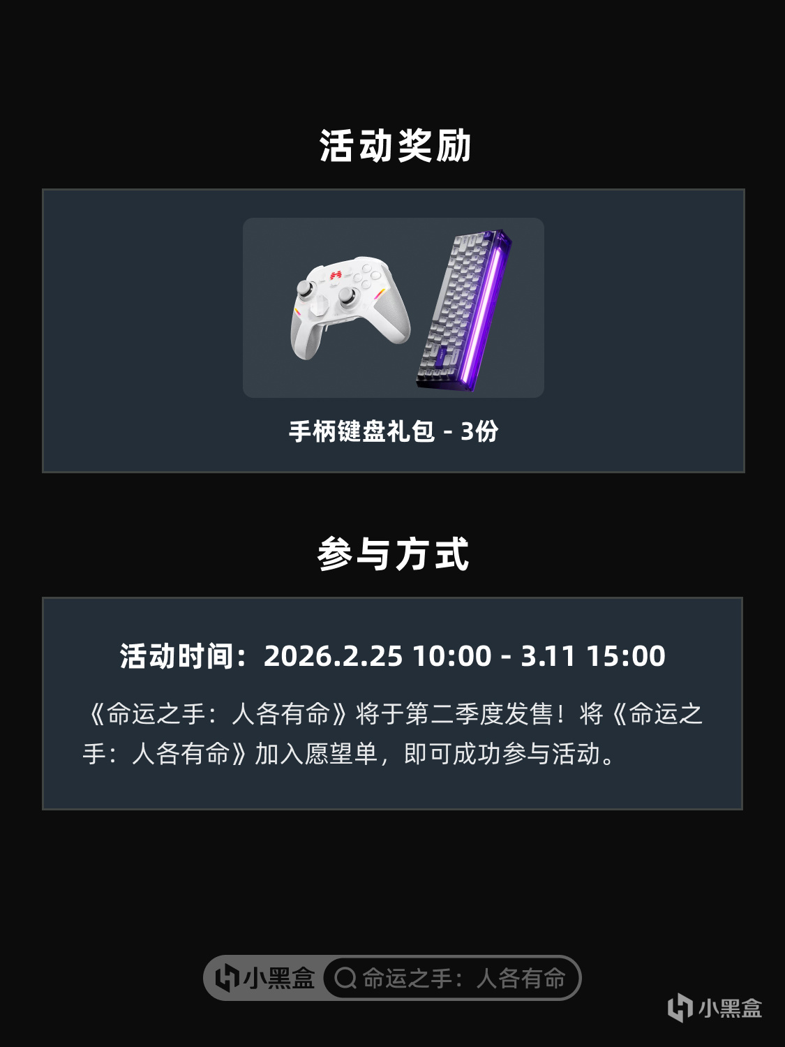 《命运之手:人各有命》将于第二季度发售!将《命运之手:人各有命》加入愿望单(点https://api.xiaoheihe.cn/store/roll_room_v2?award_id=6292),即可成功参与活动,赢取手柄键盘礼包。