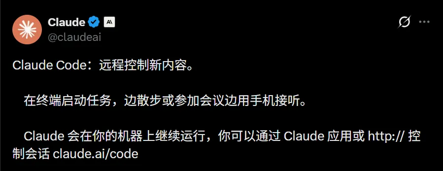 先说最抓眼球的功能:Remote Control,你在电脑上启动一个任务,比如让Claude帮你跑个数据分析或者重构代码,然后你就可以关上电脑出门。