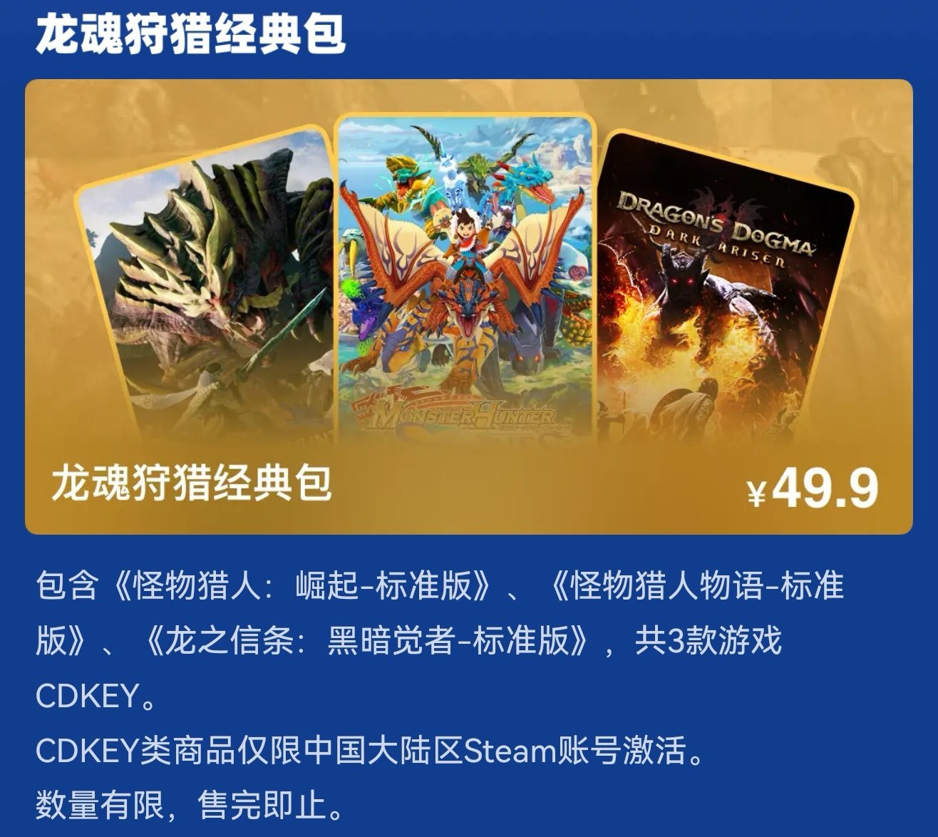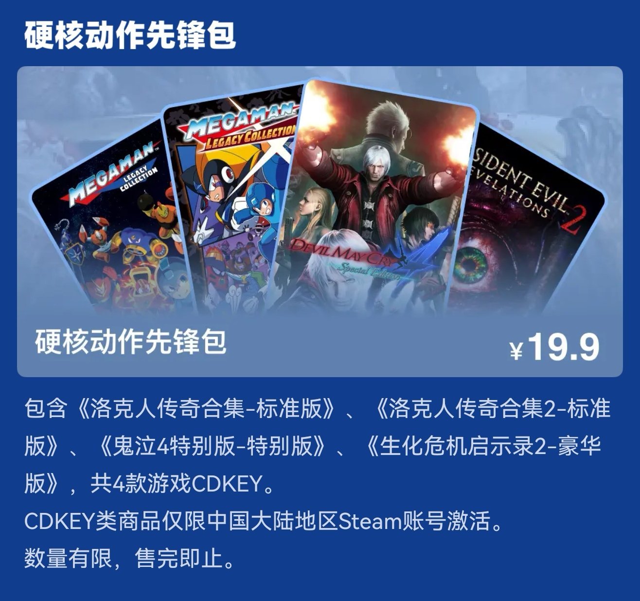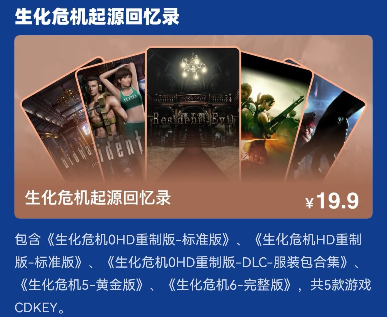 本次捆绑包分别为【龙魂狩猎经典包】【硬核动作先锋包】【生化危机起源回忆录】