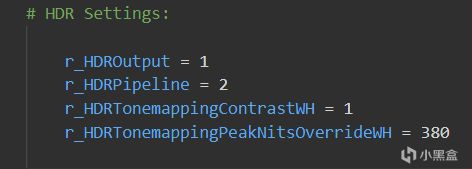 而使用該代碼將HDR Ppipeline切換爲2時即可將輸出轉爲PQ格式,以上問題迎刃而解,實在不知道戰馬腦袋裏裝的都是什麼。同時爲了讓HDR效果達到最好,請再添加以下代碼,並把尾部數字改爲你的顯示器的HDR最大亮度-10~20,HDR400就改爲380,HDR1000就改爲980以此類推。