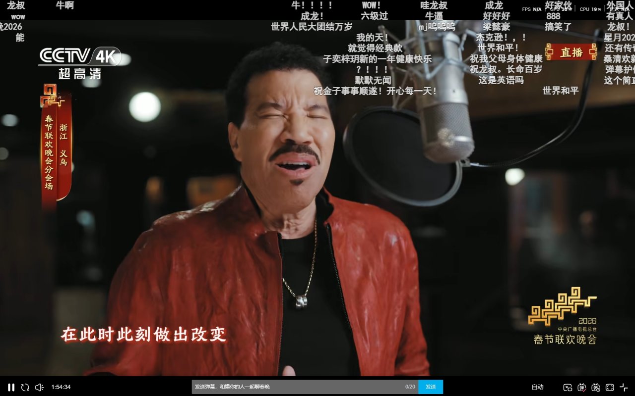 本次春晚亮点其实并不多,甚至开始那几个意义不明的节目看完之后我就已经开始玩手机了。春晚前我在义乌的朋友曾告诉我义乌这次下了血本投入准备,起初我并没有在意,但是当We are the world的前奏响起,以及莱昂纳尔·里奇(Lionel Richie)出现在荧幕上时,我整个人是震惊的。
