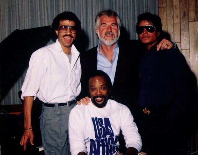 克拉根当时第一个想到并联系的创作者就是莱昂纳尔·里奇。当时里奇几乎想都没想就答应了,随后他想到要找史蒂夫·旺达(Stevie Wonder)一起来创作词曲,但是因为联系不上所以去找到了迈克尔·杰克逊(Michael Jackson),并立即致电了他的老友昆西·琼斯(Quincy Jones)担任制作人。
