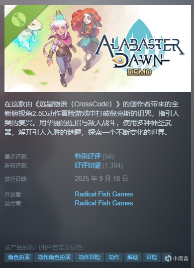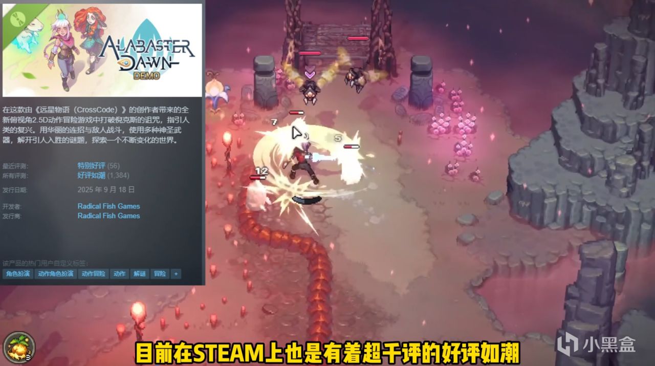 好我们今天再来看一下《阿拉巴斯特黎明》啊,这就是经典像素ARPG游戏《远星物语(CrossCode)》制作组的新作,它的试玩版目前在STEAM上也是有着超千评的好评如潮。