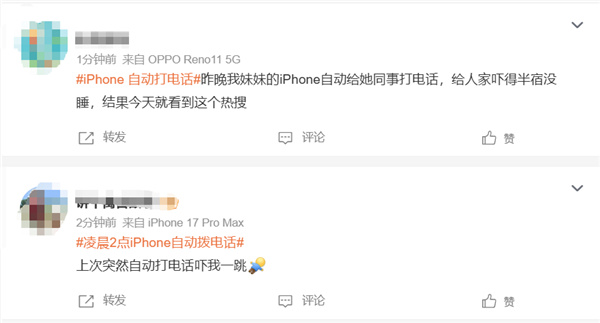 今天,#iPhone自动打电话 ## 凌晨2点 iPhone 自动拨电话# 等话题引发大量网友热议。不少网友晒出自己的亲身经历,隔着屏幕都觉得恐怖。