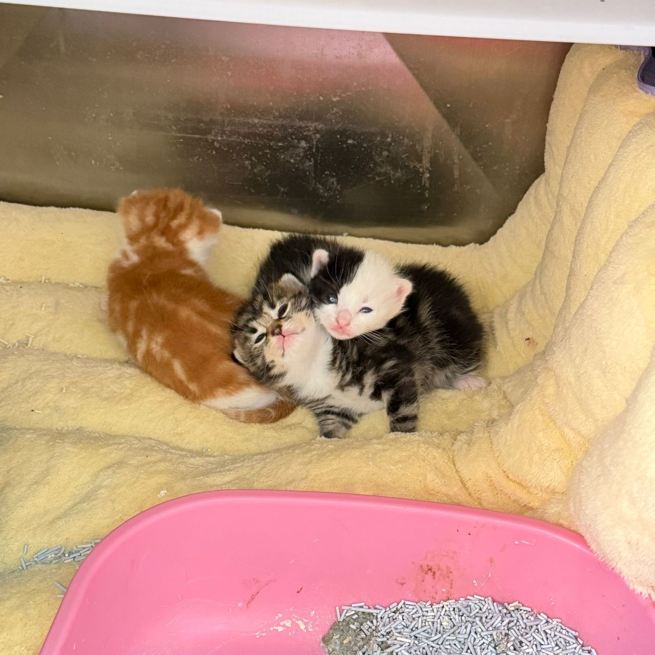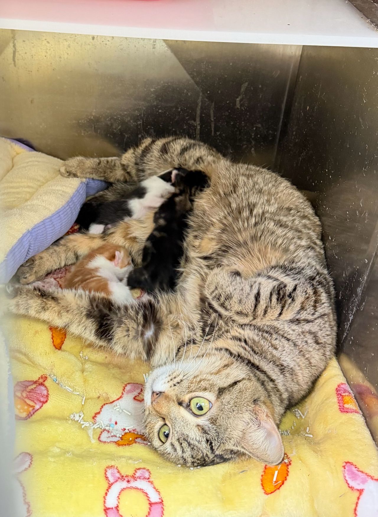 前段时间在楼下的小花园又偶遇这只狸花,一直贴贴我,喵喵叫,就赶紧回家拿罐头、航空箱想诱捕,可人家猫猫很听话,自己直接进箱子了(可能它知道我要救它)。狸花猫猫住院观察了几天,结果在一个不知名的早上医生一上班发现它夜里悄咪咪的生了一窝小奶猫,2个妹妹1个弟弟。好的吧,既然缘分让我们相遇,那剩下的就是帮猫猫们找个好归宿啦。