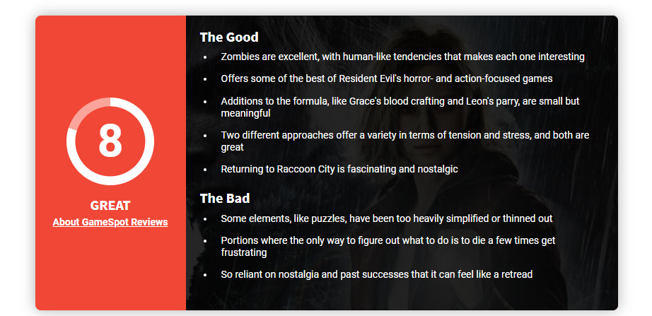 提供了《生化危機》系列中一些以恐怖和動作爲焦點的最佳遊戲體驗
