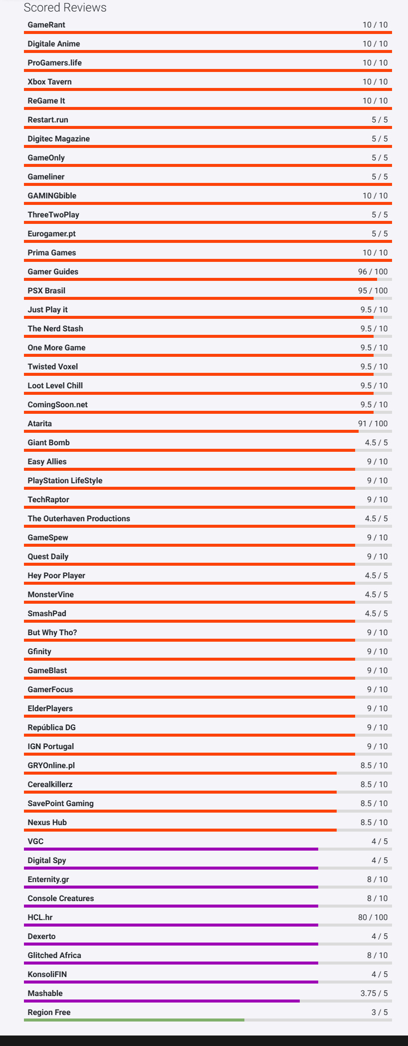 OpenCritic 收錄 55 家媒體,均分爲 90 分,推薦率 98 %。