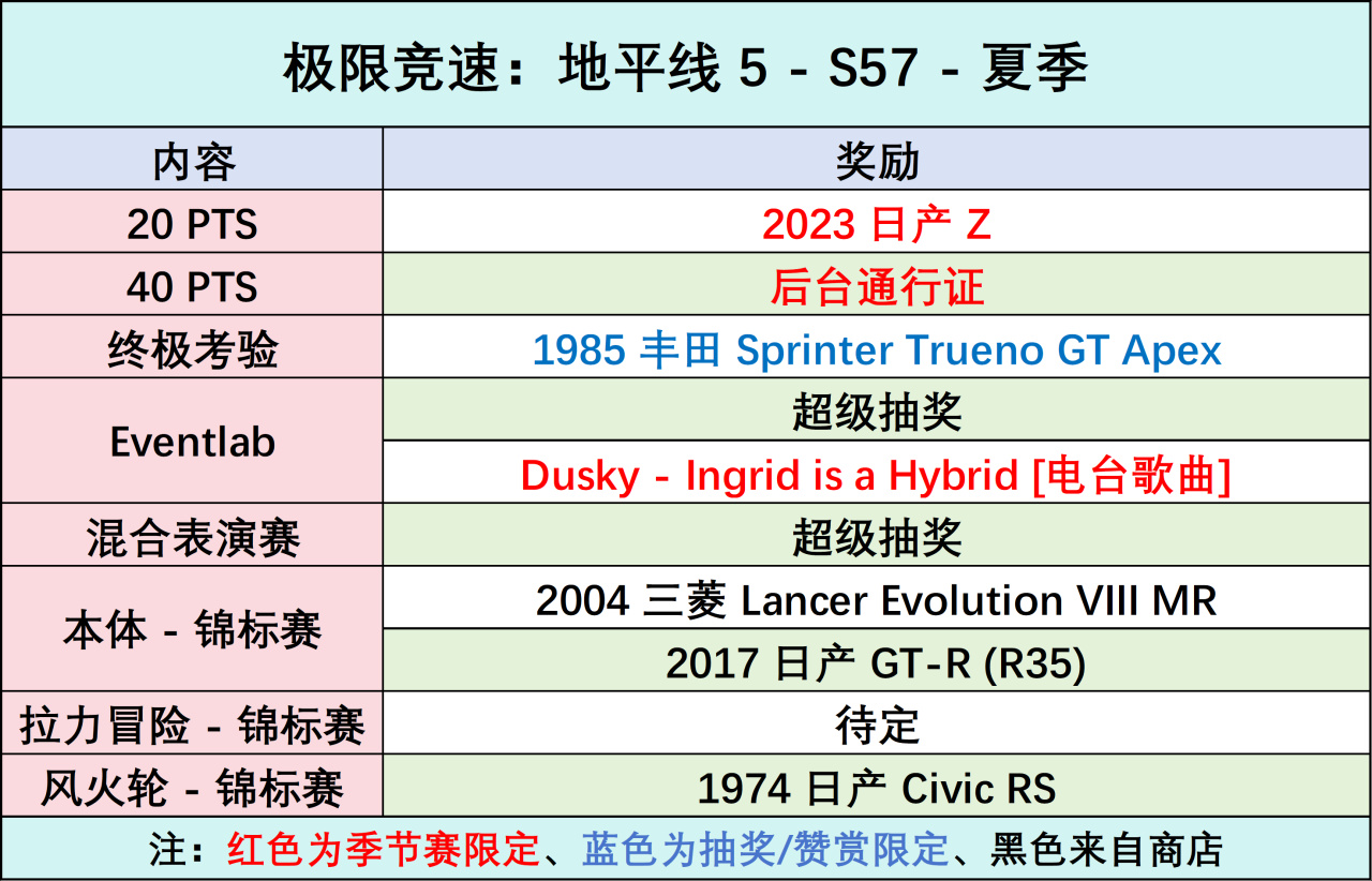 返场奖励:日产 Z '23、后台通行证。