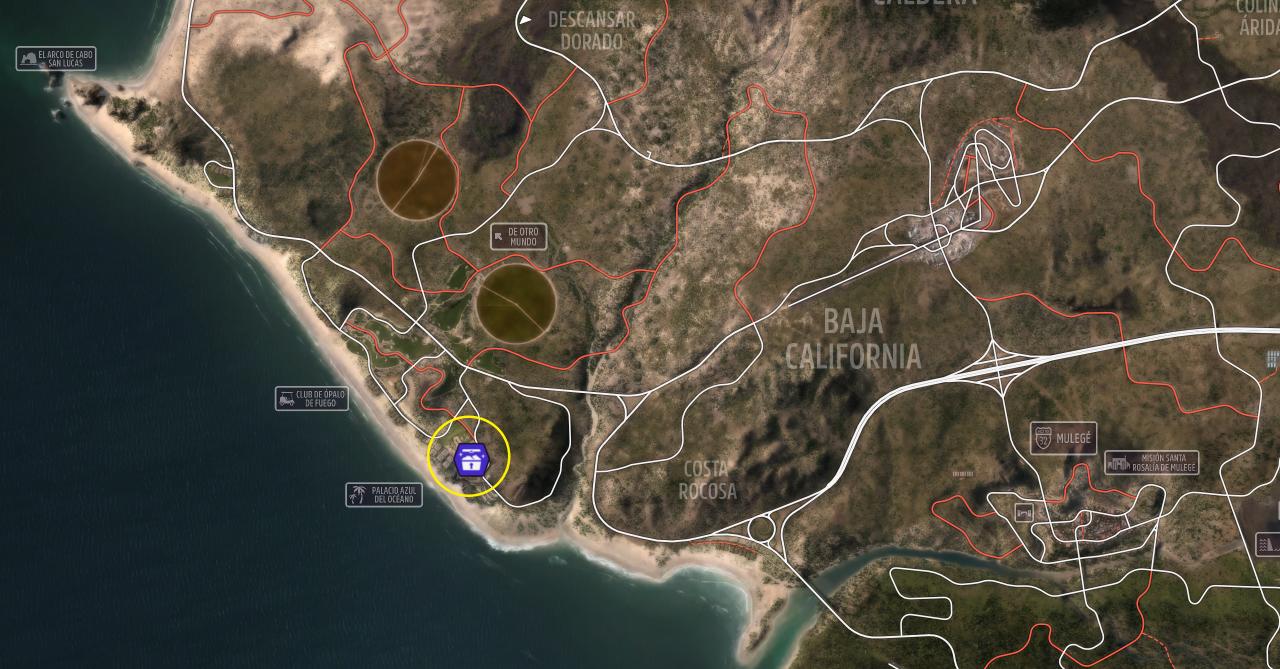 地平线巡回赛的位置如图,壁画在报名处附近的小屋墙壁上,快速传送到该地后可直接拍照。