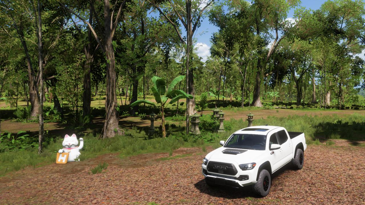 驾驶指定车型抵达丛林深处,找到石灯笼并拍照打卡即可,附近有一个招财猫摆件作为指引。