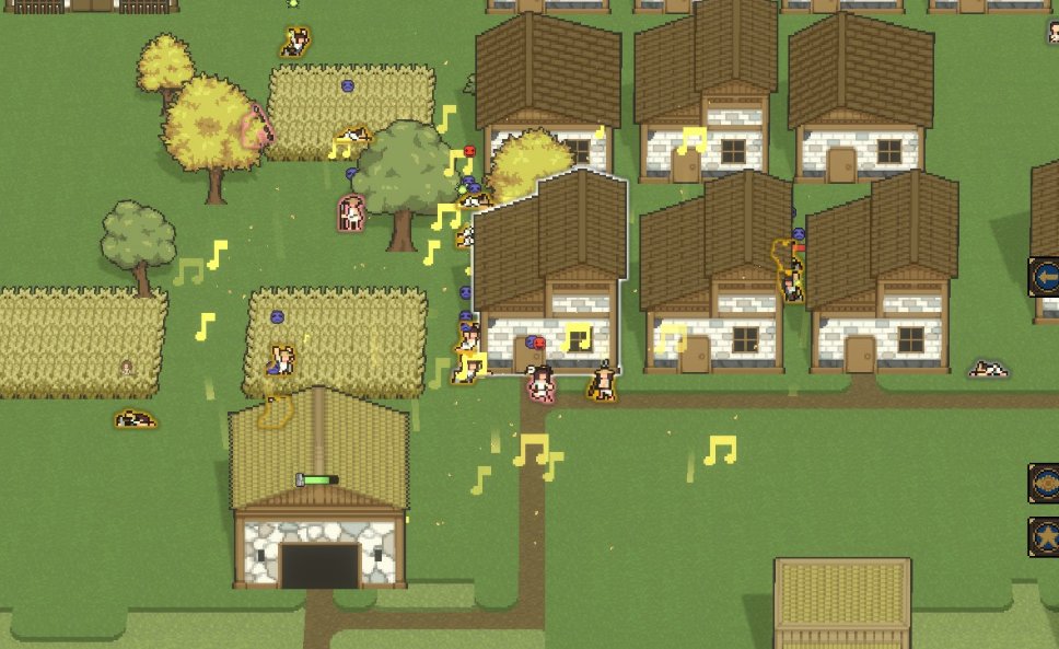 其次,阿波罗的另一个主动技能【达芙妮的余音】能够提升本教徒凡人的信仰虔诚度+15。在10m范围内演奏月桂曲后,他们会开心地跳舞💃并跪拜,但同时也会获得1层的抑郁BUFF。