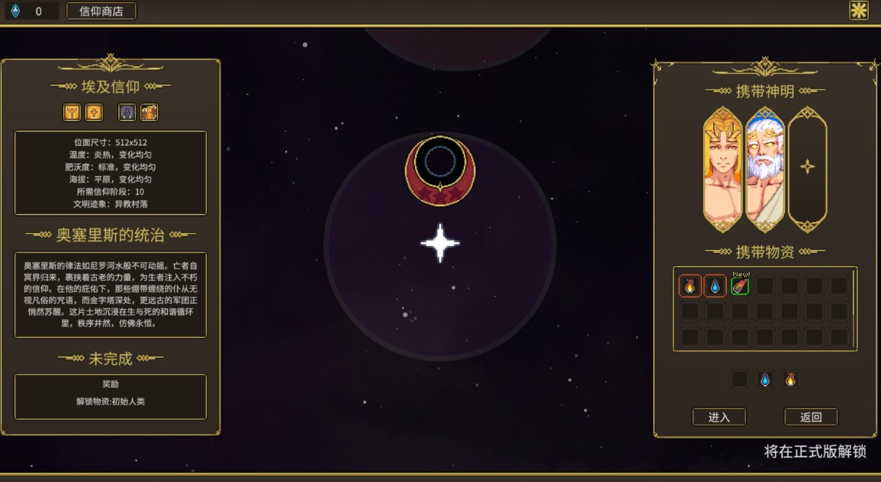 完成指定信仰阶段后,便可解锁更大范围的位面和更强力的神明。未来正式版本中,甚至有些位面还存在初始人类,异教徒已在这些地方开始发展。