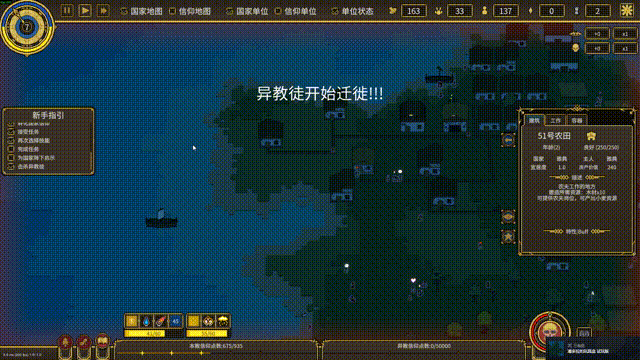 当异教徒开始迁徙时,游戏会发出警报:他们会在岛屿的随机海岸登陆,随后自动开始伐木-打猎,在这片土地上开辟出与你截然不同的异教信仰和国度。