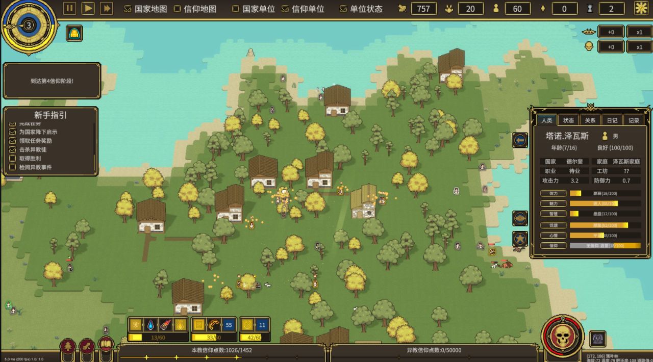 所以整个《潘多拉的玩具盒》的游玩流程便是:拓展人口→无限次传教→发展科技→抵御异教徒。