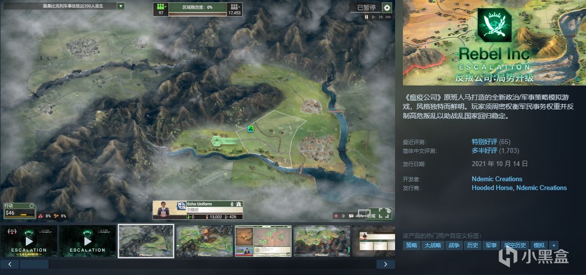 《瘟疫公司》原班人马打造的全新政治/军事策略模拟游戏,风格独特而鲜明。玩家须周密权衡军民事务权重并反制高危叛乱以助战乱国家回归稳定。