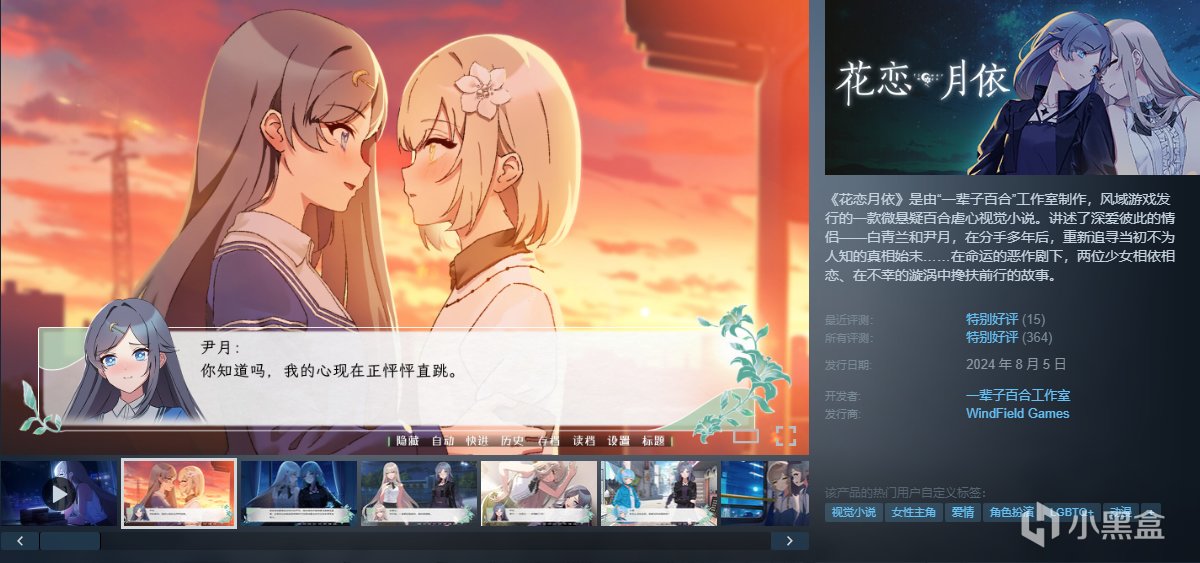 《花恋月依》是由“一辈子百合”工作室制作,风域游戏发行的一款微悬疑百合虐心视觉小说。讲述了深爱彼此的情侣——白青兰和尹月,在分手多年后,重新追寻当初不为人知的真相始末……在命运的恶作剧下,两位少女相依相恋、在不幸的漩涡中搀扶前行的故事。