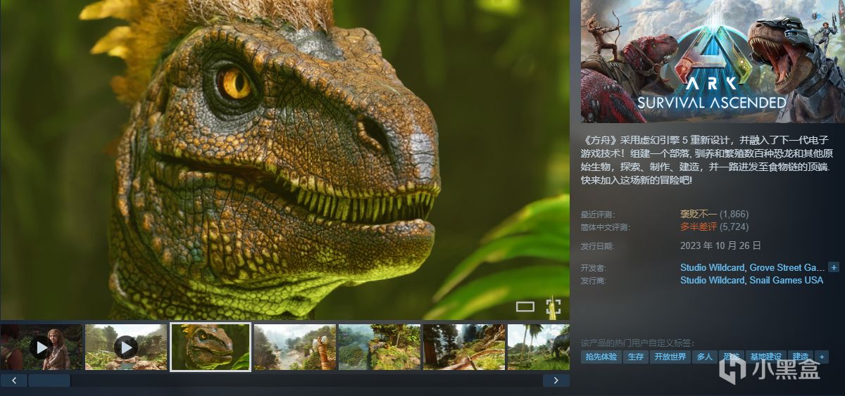 《方舟》采用虚幻引擎 5 重新设计,并融入了下一代电子游戏技术!组建一个部落, 驯养和繁殖数百种恐龙和其他原始生物,探索、制作、建造,并一路进发至食物链的顶端. 快来加入这场新的冒险吧!